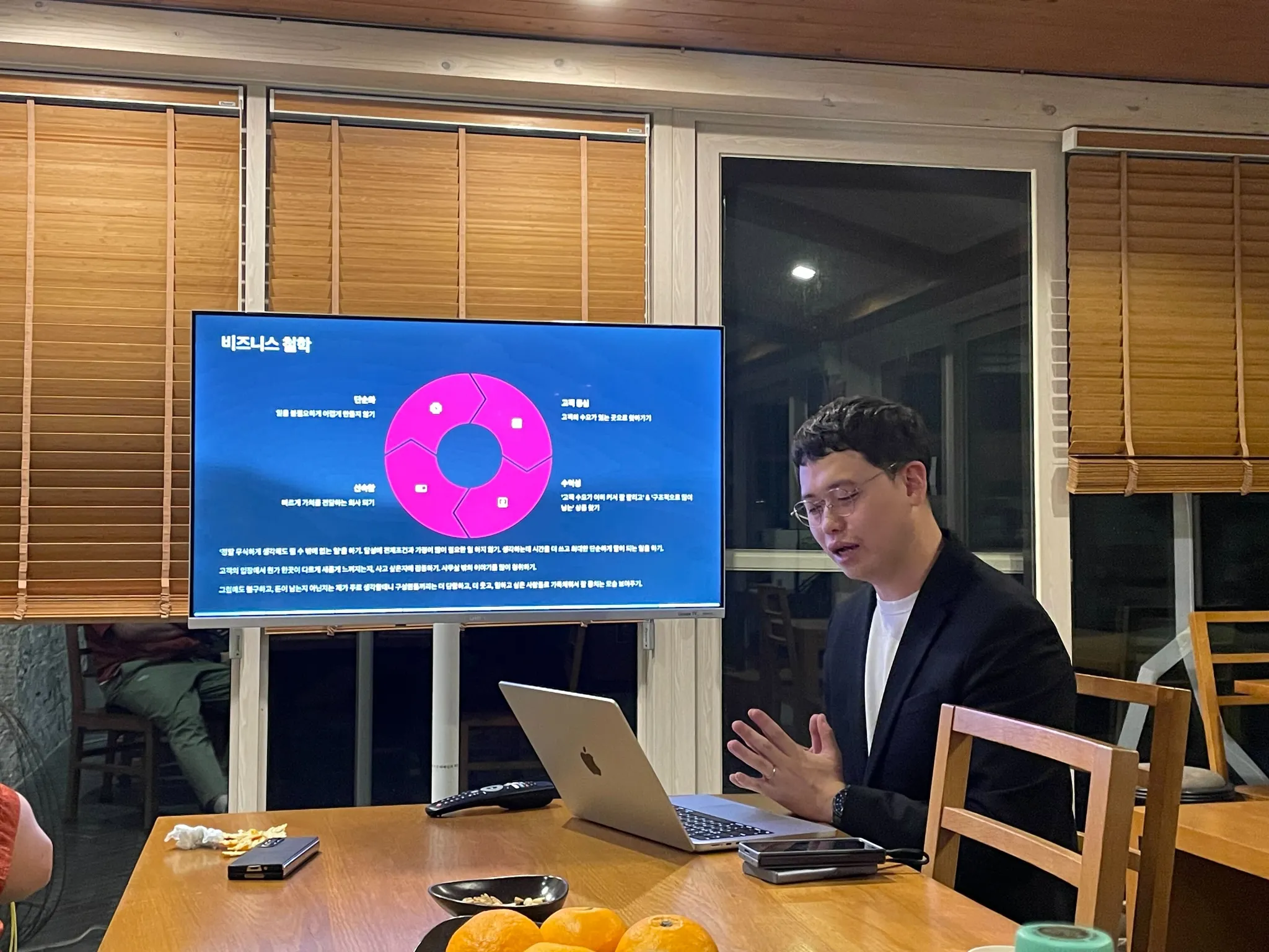 재무 현황, 전략적 방향성, 그리고 회사의 핵심 가치에 대해 논의를 했어요.