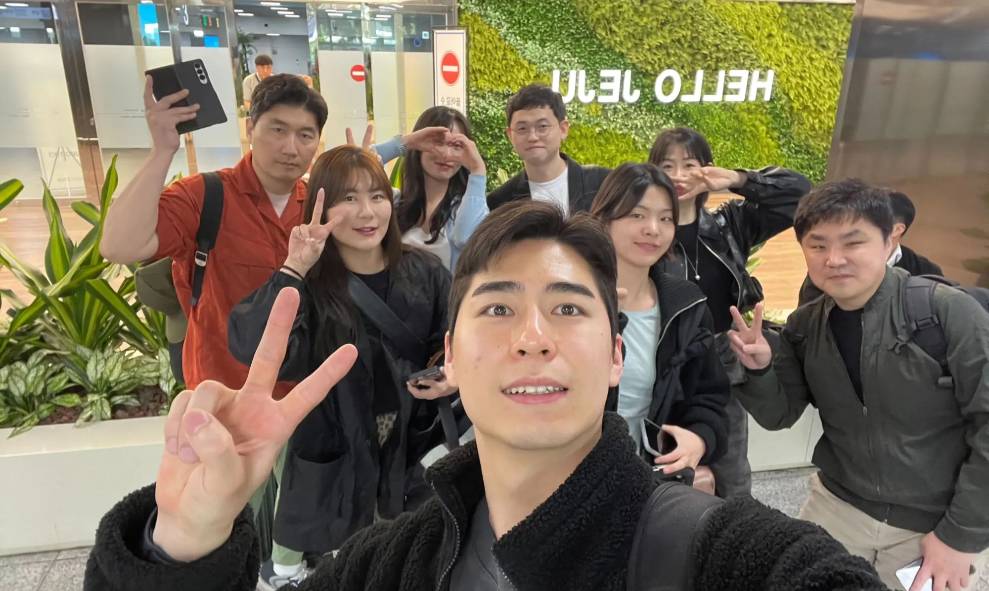 'HELLO JEJU' 앞에서 인증샷을 찍었어요.
